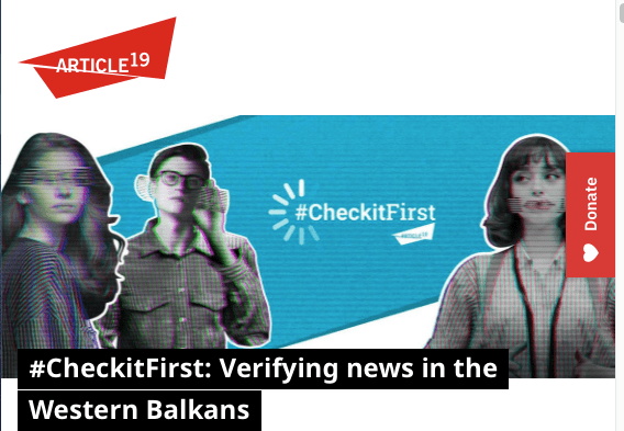 Two of a series of stories on human rights defenders that I was commissioned to write as part of ARTICLE 19’s #FreeToProtest campaign in 2022. I also created a communications framework, developed the campaign name and produced the web landing page for #CheckItFirst, their campaign for ethical journalism in the Western Balkans.